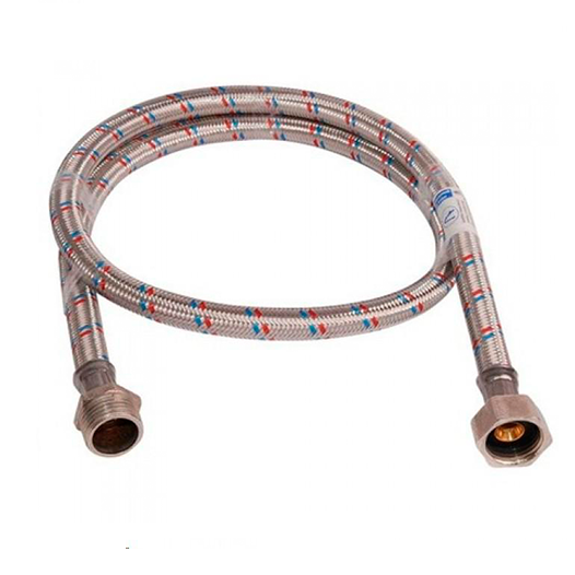 Подводка гибкая применяется для присоединения различной сантехнической арматуры к смесителям. Подходит для смывных бачков, душевых кабин, счетчиков воды. Подводка выдерживает достаточно высокие и низкие температуры, а значит подходит для использования в любых условиях. Гибкая подводка имеет жесткую конструкцию, которая отличается высокой гибкостью и устойчивостью к механическим воздействиям. Конструкция имеет оплетку из нержавеющий стали и наконечники выполенеы из латуни покрыты никилем которая не подвергается коррозии и обеспечивает долгий срок службы приспособления. Внутренняя трубка и прокладки изготовлены из нетоксичной резины.