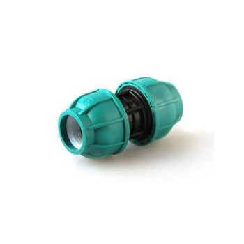 Компрессионная муфта соединительная зелёной серии обеспечивает надежное соединение двух полиэтиленовых труб равного диаметра между собой, в трубопроводных системах питьевого или технического водоснабжения с применением полиэтиленовых труб при строительстве систем полива в сельском хозяйстве, систем орошения городских газонов, или на частных приусадебных хозяйствах, при строительстве фонтанов, бассейнов.
