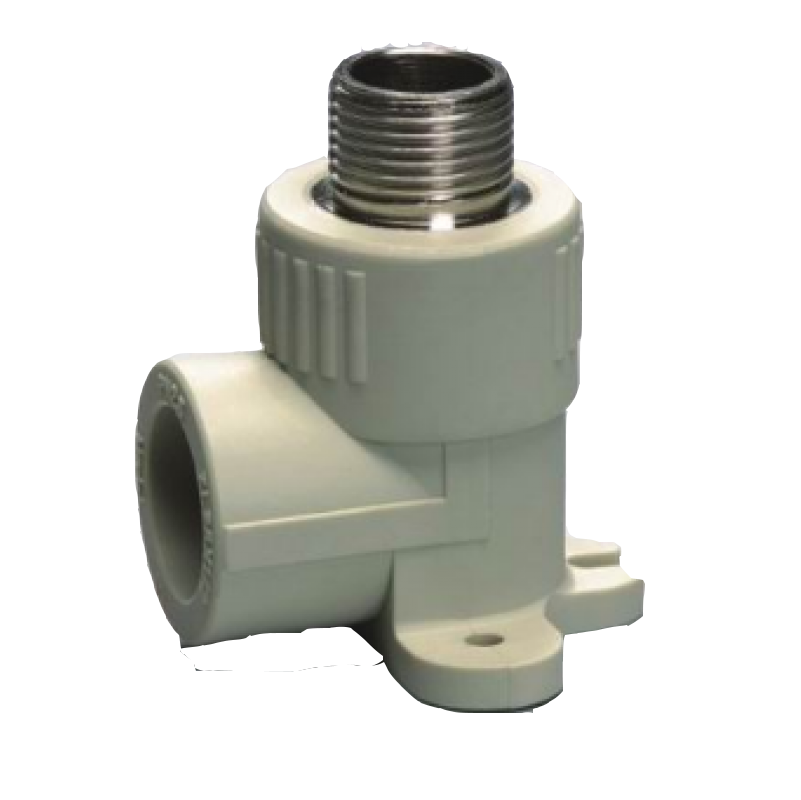 Угольник комбинированный с наружной резьбой и креплением предназначен для соединения полипропиленовой трубы и компонента системы под углом 90 градусов друг к другу с внутренней резьбой. Угольник может выдерживать давление до 25 бар. Закладные детали выполнены из высококачественной латуни с покрытием.